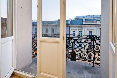 Z balkonu apartamentu roztacza się urzekający widok na Aleje Ujazdowskie, Plac Trzech Krzyży oraz iglicę Pałacu Kultury i Nauki, symbolu Warszawy. Lokalizacja apartamentu zapewnia łatwy dostęp do głównych atrakcji stolicy, takich jak Pałac Belwederski, ulica Nowy Świat, Plac Zamkowy i Zamek Królewski.