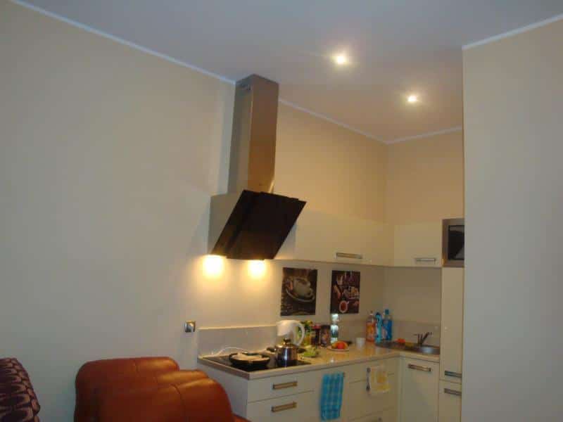 Apartament składa się z przestronnego salonu z aneksem kuchennym, przedpokoju oraz łazienki. Kuchnia jest nowocześnie urządzona i wyposażona w:
