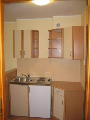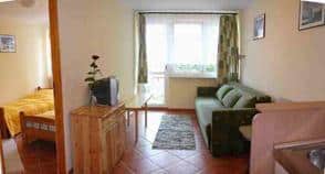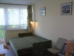 – Ława, 2 krzesła, komoda, radio, TV i lampka nocna.