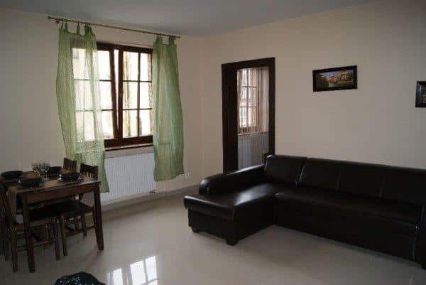 – Przestronny salon z aneksem kuchennym, w którym znajdą Państwo lodówkę, zamrażarkę, zmywarkę oraz płytę ceramiczną. Dla miłośników rozrywki przygotowaliśmy telewizor o przekątnej 42 cale z telewizją kablową oraz szybki internet o prędkości 8MB.