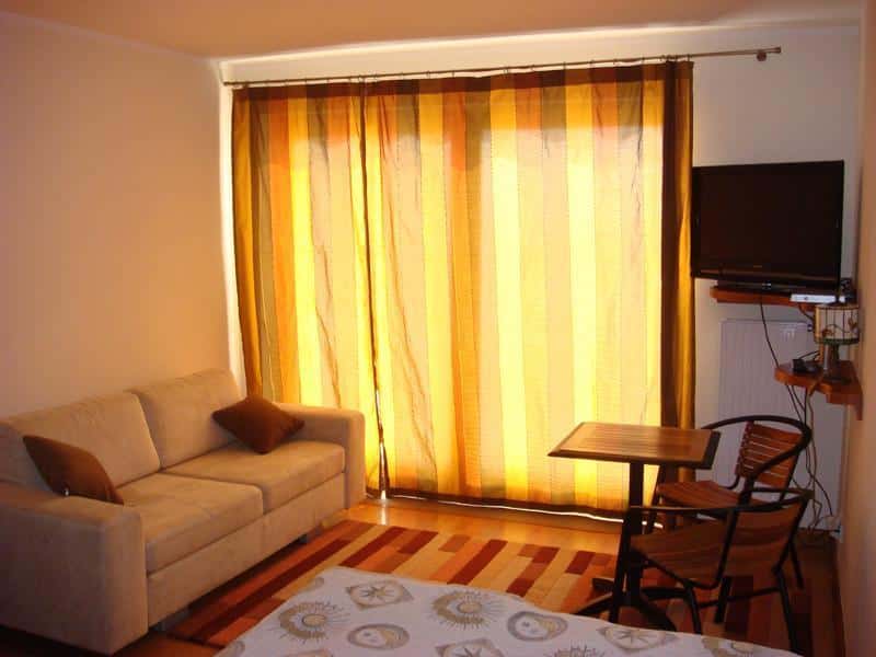 Apartament jest w pełni wyposażony, co pozwala na wygodne przygotowywanie posiłków w aneksie kuchennym. Dodatkowo, przestronny taras umożliwia delektowanie się śniadaniem czy kolacją na świeżym powietrzu, podziwiając jednocześnie malowniczy krajobraz.