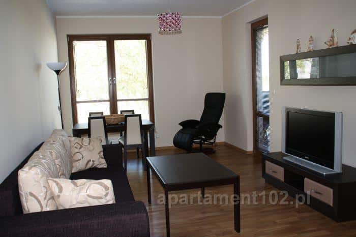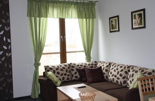 – Salon z sofą (z funkcją spania), telewizorem 37″ LCD, stołem i krzesłami,