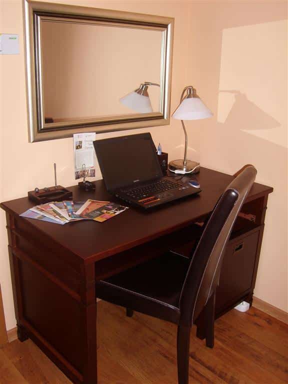 – Kuchnię z jadalnią wyposażoną w małą lodówkę, płytę elektryczną, toster, czajnik elektryczny i pełną zastawę kuchenną,