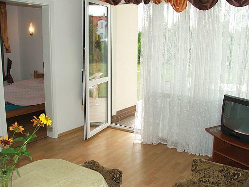 – salon z telewizorem i radiem (taras lub balkon na piętrze z meblami ogrodowymi),