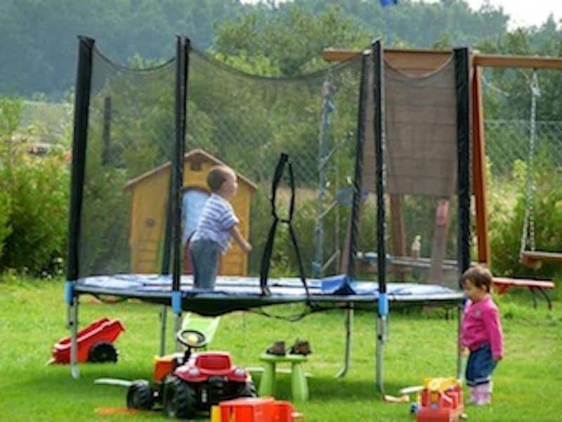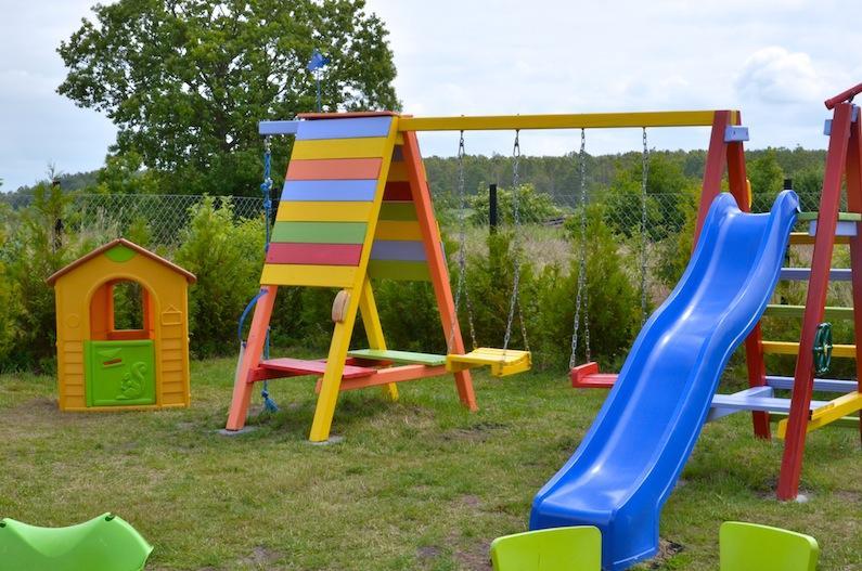 – plac zabaw z zjeżdżalnią, huśtawkami, piaskownicą, zabawkami ogrodowymi, bujakami, plastikowym domkiem i trampoliną,