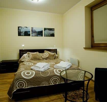 Dla miłośników spokoju i komfortu. Luksusowe wyposażenie i prywatna sauna do ogrzania po narciarskich przygodach. Kuchnia z pełnym wyposażeniem. Sypialnia z dużym łóżkiem, salon z aneksem kuchennym. Widok na Gubałówkę, powierzchnia prawie 50 m². Cicha okolica, blisko centrum (5 minut samochodem), zapewnia relaks na najwyższym poziomie.