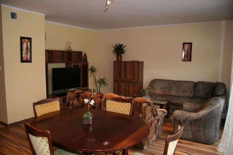 Apartament Dragon I, choć mniejszy, również oferuje komfortowe warunki na 60,5 m². Składa się z jednej sypialni, salonu z aneksem kuchennym i łazienki, a jego wyposażenie obejmuje dodatkowo klimatyzację i kominek. Może pomieścić do 5 osób.