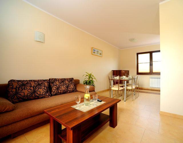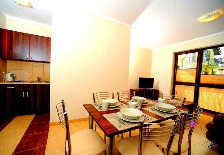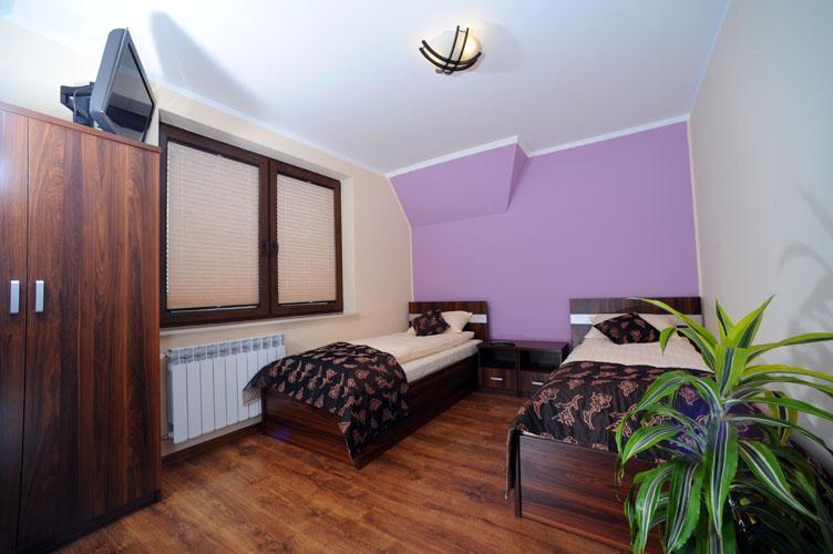 Do dyspozycji naszych Gości są trzy dwupoziomowe apartamenty o powierzchni 60 m2, każdy z osobnym wejściem, aneksem kuchennym, salonem, dwoma sypialniami i dwiema łazienkami. Dodatkowo oferujemy jednopoziomowy apartament (na piętrze, nad salą kominkową), który posiada dwa pokoje, aneks kuchenny i łazienkę.