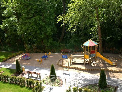 Po aktywnym dniu mogą Państwo zrelaksować się na zielonych dziedzińcach, gdzie znajdują się ławeczki wśród krzewów. Dla najmłodszych przygotowaliśmy kolorowy plac zabaw. W pobliżu (ok. 100m) znajduje się kompleks SPA z basenem krytym (za dodatkową opłatą), boiska sportowe oraz siłownia na wolnym powietrzu.
