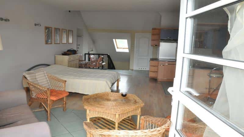 – **Apartament 1-pokojowy dla 3 osób** (46 m²) z łóżkiem dwuosobowym i dostawką, kuchnią z pełnym wyposażeniem, łazienką z prysznicem oraz tarasem.