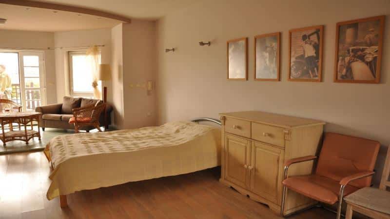 – **Apartament 1-pokojowy dla 2 osób** z łóżkiem dwuosobowym, mikrofalówką, czajnikiem i łazienką.