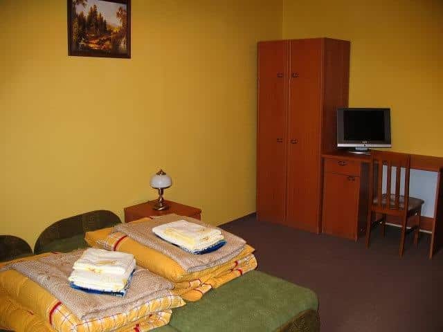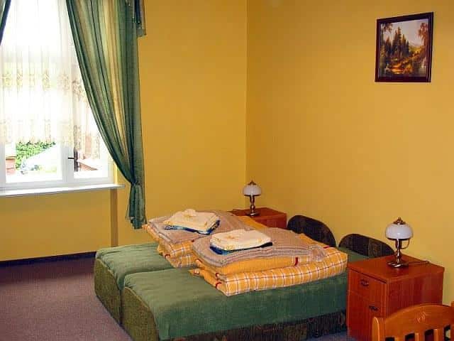 – **Trzy pokoje trzyosobowe**: Każdy z nich ma dwa tapczany i wersalkę, co pozwala na zakwaterowanie czterech osób. W pokojach znajdują się łazienka, telewizor i czajnik. Jeden z pokoi posiada aneks kuchenny z zlewem i dwupalnikową płytą ceramiczną. Cena za osobę to 80 zł, z możliwością negocjacji.
