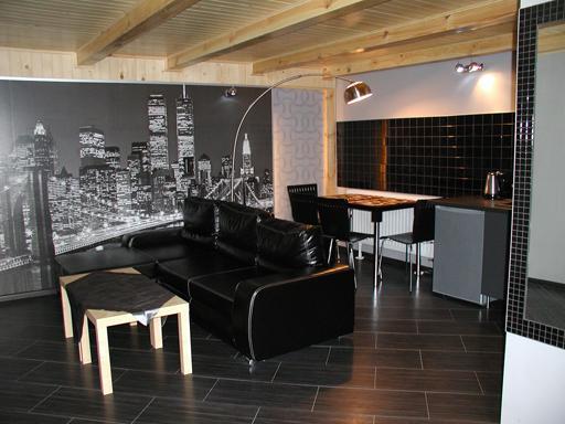 – **Apartament I** (80 m²): Duży salon z aneksem kuchennym, sypialnia na piętrze, łazienka z osobnym WC i prysznicem. Wyposażony w dwa telewizory i dostęp do internetu, pomieści sześć osób z możliwością dostawki.