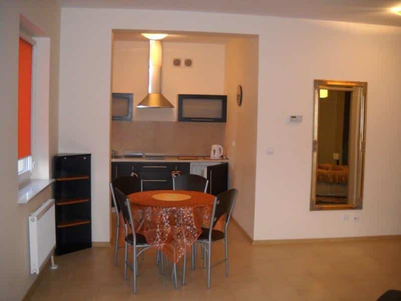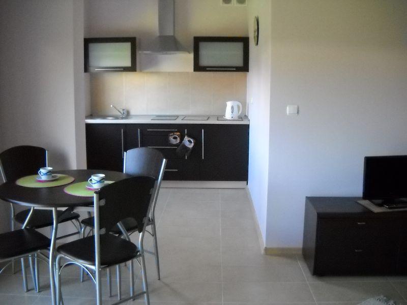 – Kompletnie wyposażony aneks kuchenny (lodówka z zamrażarką, kuchenka, czajnik, naczynia, garnki, mikrofala)