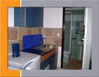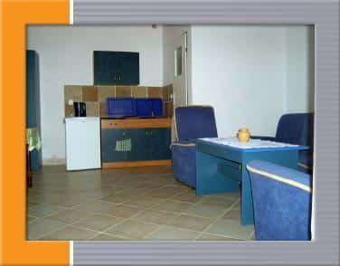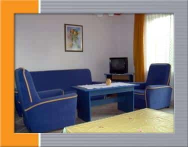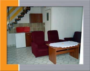Na parterze każdego apartamentu znajduje się przytulny salonik, idealny do odpoczynku i relaksu. Wyposażony jest w wygodny zestaw wypoczynkowy oraz aneks kuchenny z pełnym wyposażeniem, co umożliwia samodzielne przygotowywanie posiłków. Dodatkowo, na tym poziomie znajduje się łazienka z bezpośrednim wejściem z saloniku.