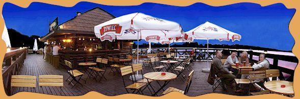 Dodatkowym atutem naszego obiektu jest pływający pomost, na którym można delektować się lampką wina, kuflem piwa lub ulubionym drinkiem, podziwiając jednocześnie piękno jeziora. Serwujemy na nim różnorodne potrawy, w tym świeże ryby oraz dania z grilla węglowego, które zadowolą każde podniebienie. W ciepłe, letnie wieczory atmosferę urozmaicają koncerty na żywo lub projekcje muzyczne.