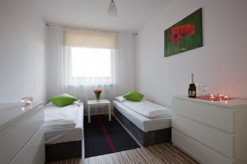 W sypialni znajdują się dwa pojedyncze łóżka, które można złączyć, tworząc duże łoże małżeńskie. W pokoju dziennym są dwie dwuosobowe rozkładane kanapy. Dla gości przygotowaliśmy ręczniki oraz pościel.