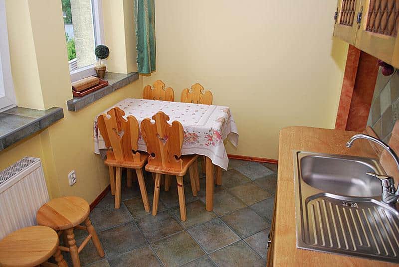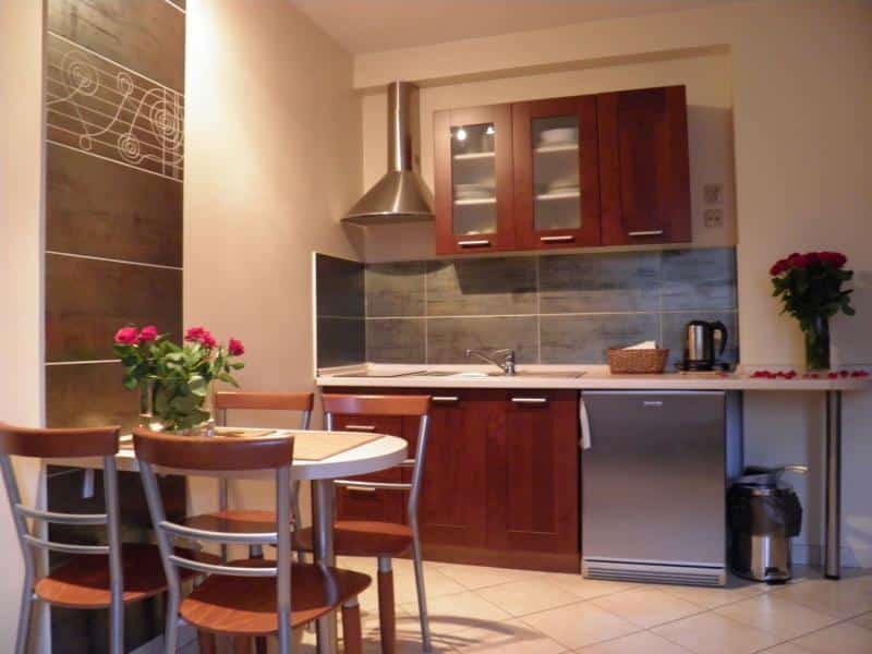 Oferujemy dwa rodzaje apartamentów. Apartament Mały o powierzchni 33 mkw składa się z jednej sypialni z łożem małżeńskim, pokoju z aneksem kuchennym z rozkładaną sofą oraz łazienki. Natomiast Apartament Duży o powierzchni 70 mkw posiada dwie sypialnie z łożami małżeńskimi i rozkładaną kanapą, kuchnię oraz łazienkę.
