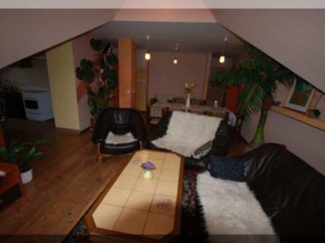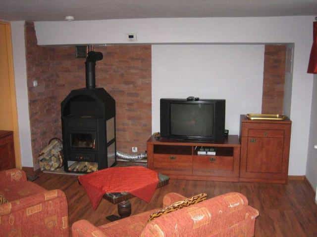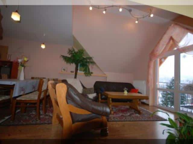 – Hol z dwoma zestawami wypoczynkowymi, aneksem obiadowym dla 9 osób, telewizją satelitarną (Cyfrowy Polsat) oraz balkonem z widokiem na dolinę Wisły i okoliczne góry,