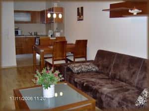 – Przytulny salon z aneksem kuchennym,