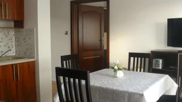 Nasza oferta skierowana jest do osób pragnących wypocząć w komfortowych warunkach blisko morza. Proponujemy przestronne, 2-pokojowe apartamenty, które pomieszczą do 4 osób. Każdy apartament wyposażony jest w aneks kuchenny, łazienkę z prysznicem oraz sprzęt RTV i AGD, w tym telewizor, mini wieżę, lodówkę i kuchenkę elektryczną. Dodatkowym atutem jest taras z widokiem na malownicze Jezioro Jamno. Dla naszych gości przygotowaliśmy również ogrodzone miejsca parkingowe.