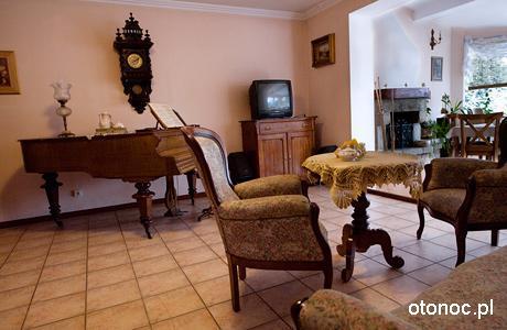 Na parterze aparthotelu znajduje się salon z kominkiem, który tworzy przytulną atmosferę, a fortepian dodaje mu wyjątkowego uroku.