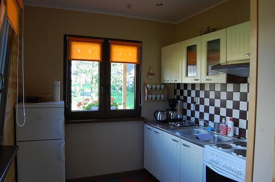 Domek o powierzchni 60m² jest dostępny przez cały rok, a przytulny kominek zapewni ciepło w chłodniejsze dni. W cenie wynajmu oferujemy różnorodny sprzęt sportowy, w tym: