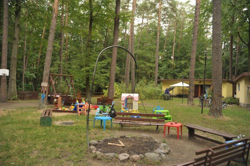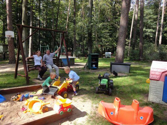 – Dla dzieci: plac zabaw z domkiem, huśtawkami, zjeżdżalniami, piaskownicą oraz rowerki dla różnych grup wiekowych.