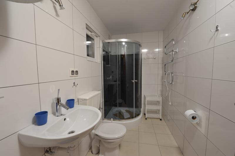 – Łazienka z kabiną prysznicową, umywalką, toaletą, suszarkami.