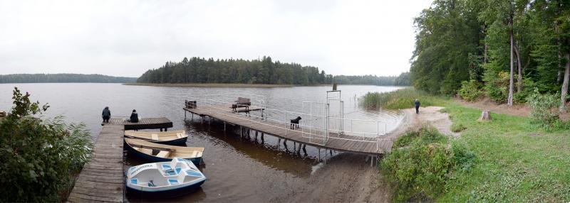 – Duży pomost do opalania i łowienia ryb, mały pomost z łódkami i rowerami wodnymi.