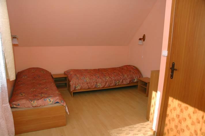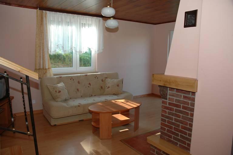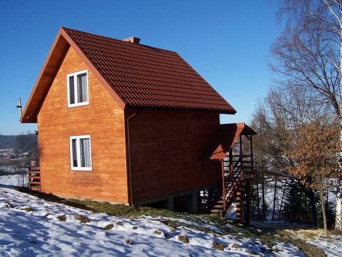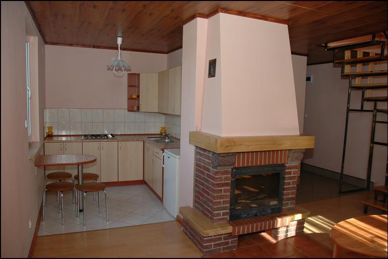 Czekają tu na Państwa trzy drewniane, całoroczne, nowe domki letniskowe. Każdy z nich ma powierzchnię 65 m2, składającą się z wielu przyjemnych pomieszczeń. W domkach znajduje się duży salon z kominkiem, z którego można wyjść na taras i cieszyć się pięknymi widokami. Kuchnia jest w pełni wyposażona i umożliwia przyrządzanie posiłków – jest w niej lodówka, kuchenka gazowa czteropalnikowa oraz garnki i zastawa stołowa. Łazienka jest wyposażona w kabinę natryskową, co zapewnia wygodę podczas pobytu. Na piętrze znajdują się dwie sypialnie, które mogą pomieścić aż 6 osób.
