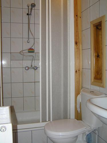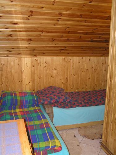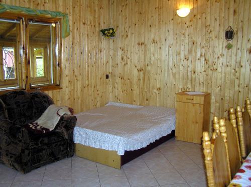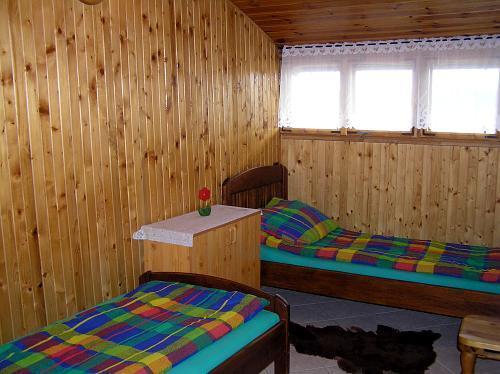 – Piętro: trzy dwuosobowe pokoje, łazienka z prysznicem i WC, sala bilardowa z kominkiem.