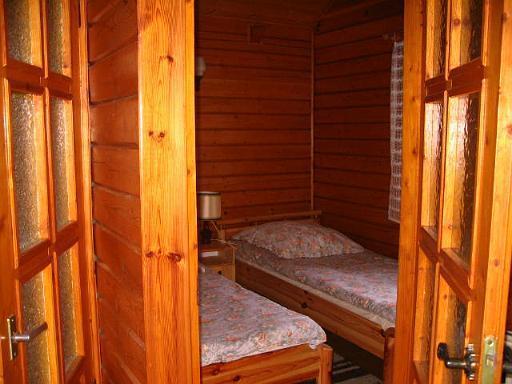 – Drewniane domki letniskowe w pełni wyposażone w kuchnię, naczynia, łazienkę, salon z telewizją satelitarną, sypialnię oraz duży taras z meblami ogrodowymi.