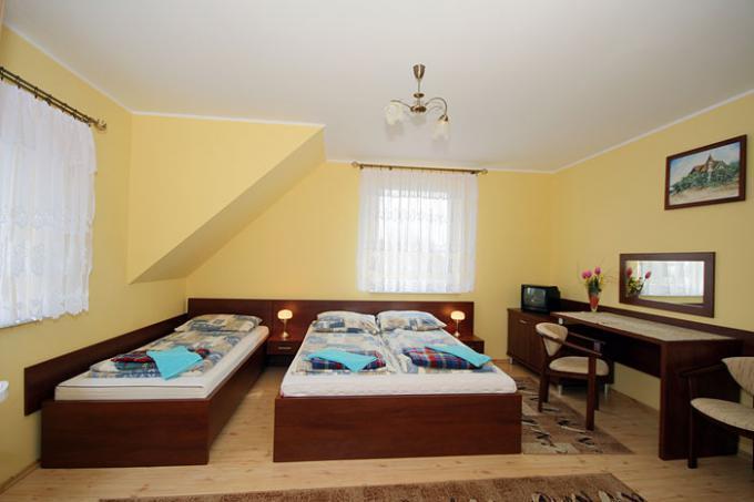 Oferujemy różnorodne zakwaterowanie, w tym murowano-drewniane domki, pokoje gościnne o wysokim standardzie oraz przyczepy kempingowe. Nasze pokoje 2- i 3-osobowe wyposażone są w łazienki, telewizory, Wi-Fi oraz lodówki. Dodatkowo, dostępna jest w pełni wyposażona kuchnia.