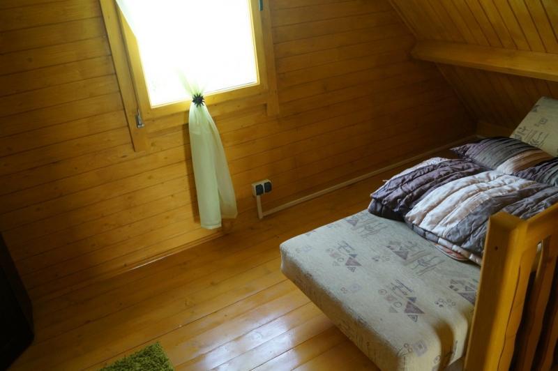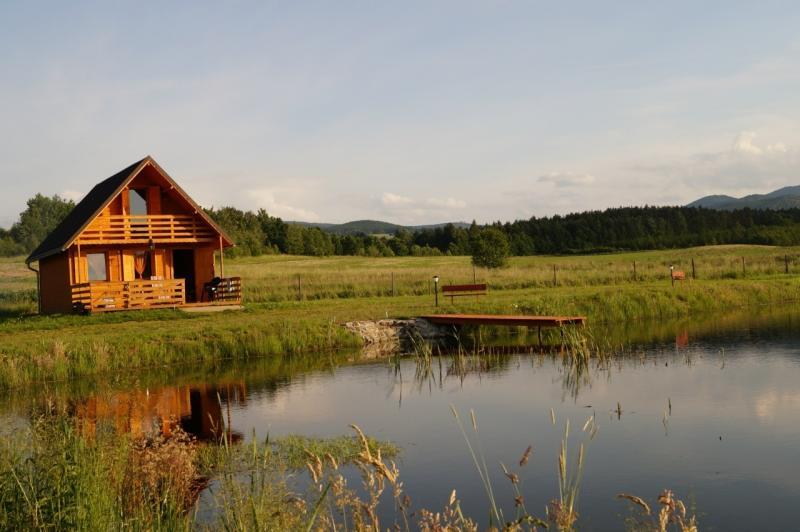 Domek drewniany to idealny wybór dla większej grupy osób. Jest całoroczny i posiada wszystko, czego potrzeba do komfortowego pobytu. Kuchnia jest w pełni wyposażona, a łazienka ma kabinę z hydromasażami. Na piętrze znajdują się dwie sypialnie, a z tarasu i balkonika można podziwiać piękne widoki na stawy. Domek może pomieścić pięć osób, a w razie potrzeby można dostawić łóżko polowe.