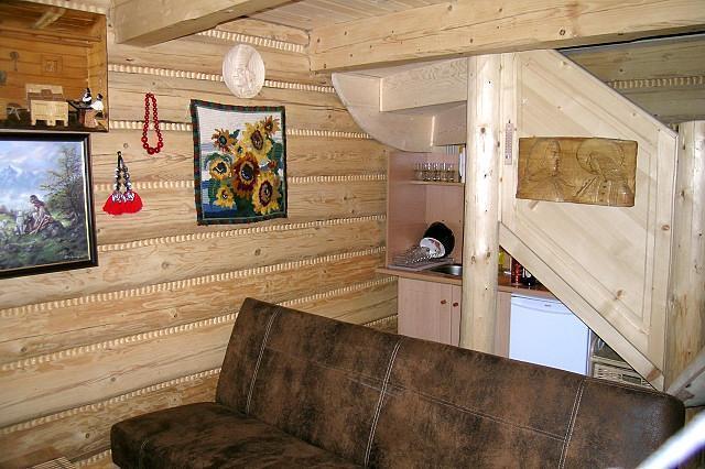 Nasza chatka, wykonana z drewna świerkowego i pokryta tradycyjnym gontem, emanuje autentycznym góralskim klimatem. W środku znajdziecie przytulne wnętrze z aneksem kuchennym, w którym znajduje się mikrofalówka, czajnik bezprzewodowy, lodówka oraz naczynia. Do dyspozycji gości jest również łazienka z toaletą i prysznicem.