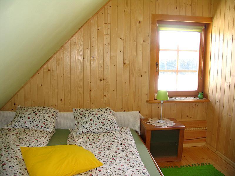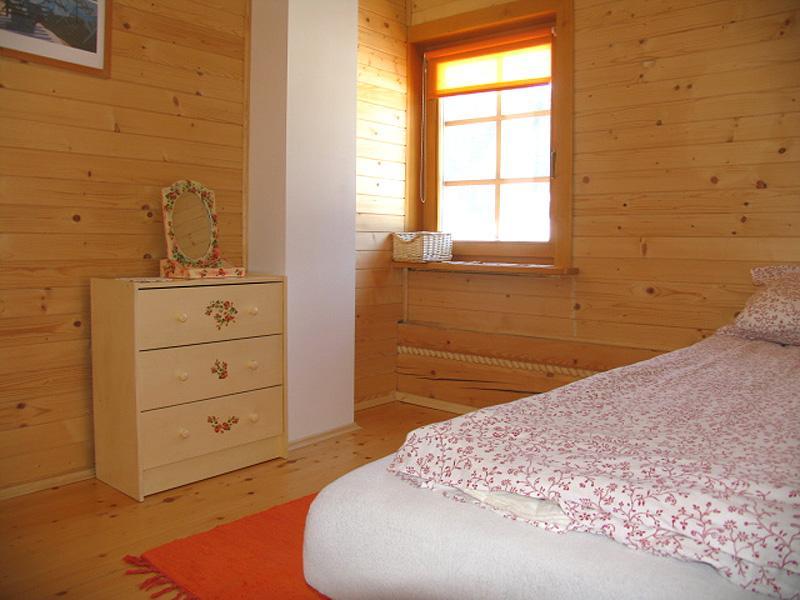 – Pokój zielony: z szerokim łóżkiem (180 cm), tapczanem (80 cm), komodą, szafką i wieszakiem na ubrania.