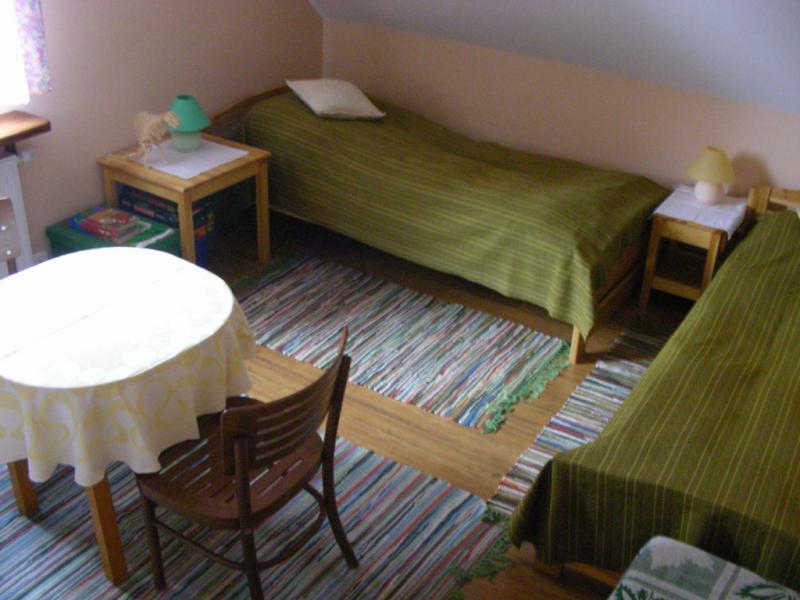 Nowością w naszej ofercie jest “Spanie na sianie” – małe mieszkanko wakacyjne w dawnej stajni. Na parterze znajduje się aneks kuchenny, kącik jadalny, kącik wypoczynkowy i łazienka, a na piętrze drewniane łóżka z siennikami wypełnionymi sianem z naszej łąki. Mieszkanko przeznaczone jest dla 5-7 osób, a cena za nocleg wynosi 30 zł.