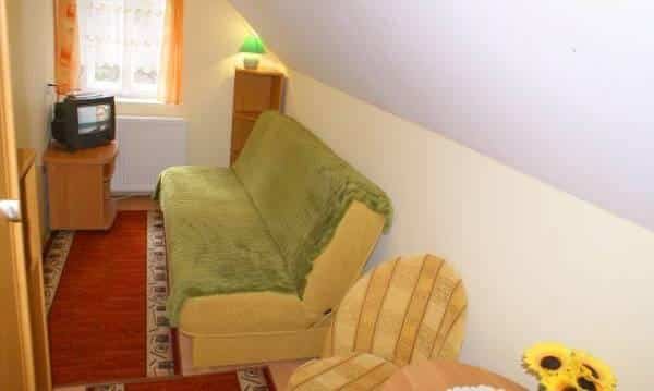 W naszym obiekcie dostępne są różne rodzaje pokoi, aby sprostać różnym potrzebom naszych gości. Mamy do dyspozycji 2 pokoje 4-osobowe z łazienkami, które są idealne dla rodzin. Każdy segment rodzinny składa się z dwóch pokoi, gdzie w jednym znajduje się łóżko małżeńskie, a w drugim dwa pojedyncze łóżka. Ponadto, mamy również pokój 2-osobowy z łóżkiem małżeńskim i łazienką oraz pokój 1-osobowy z łazienką na korytarzu. Wszystkie pokoje są wyposażone w nowe meble i telewizor.