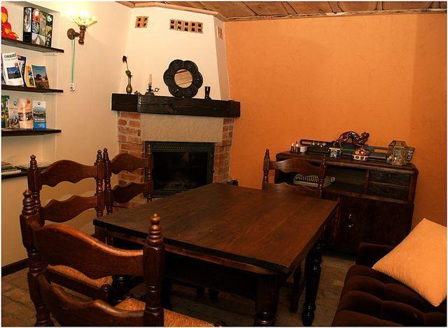 – Salon z kominkiem
