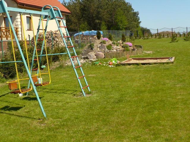 Na zewnątrz czeka na gości wiele atrakcji. Duża, ogrodzona działka wyposażona jest w: