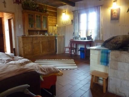 Zabytkowy dom drewniany z okolic Bodzentyna oferuje możliwość noclegu dla 5 osób. Dom jest wyposażony w kolektory słoneczne oraz piec kaflowy, co zapewnia efektywne ogrzewanie. Wewnątrz znajduje się stylowy kominek oraz komfortowa łazienka z kabiną parową.