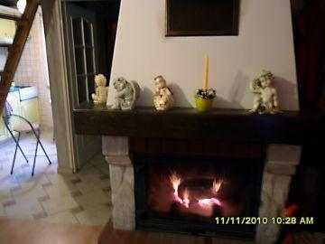 – Salon z kominkiem