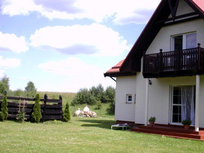 Całoroczny dom do wynajęcia, położony na malowniczym wzniesieniu tuż przy jeziorze, to idealne miejsce na wypoczynek. Znajduje się on na przedłużeniu wsi Łutynowo, przy trasie Warszawa-Olsztyn, otoczony pagórkami pokrytymi lasem, co dodaje mu wyjątkowego uroku.