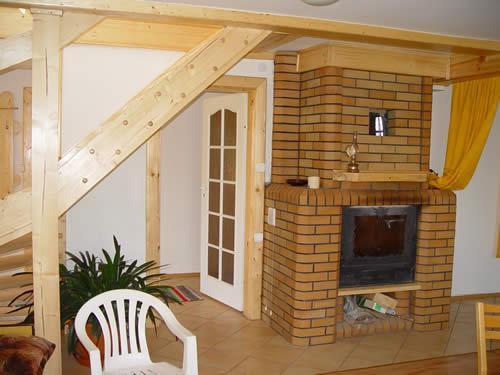 – komfortowy salon z kominkiem i telewizorem,