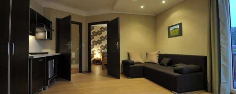 W ofercie naszej znajdują się pokoje 2 i 3 osobowe z łazienkami i balkonami oraz dwupokojowe apartamenty (4 os.), każdy z obszernym tarasem. Rano obudzić może Państwa pod oknem ryk młodego jelonka, a zszarpane nerwy ukoi szmer potoku płynącego zaledwie 3 metry obok obiektu.