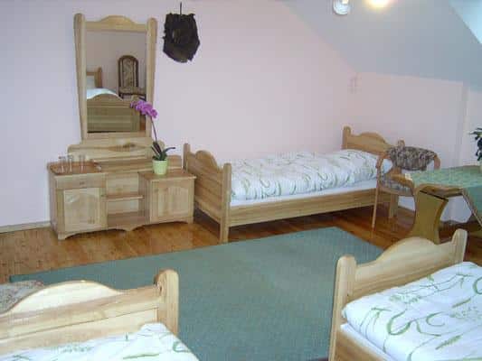 Dysponujemy 25 miejscami noclegowymi w siedmiu komfortowych pokojach dwu-, trzy- i czteroosobowych.