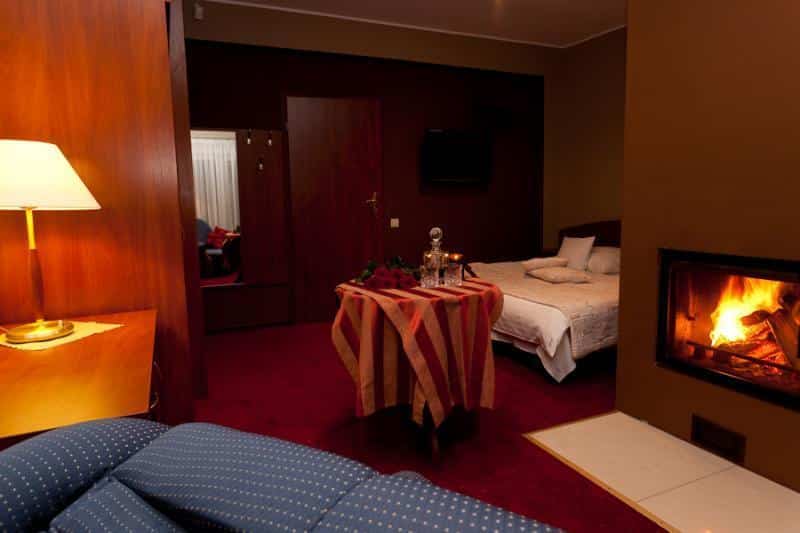 – Pokój kominkowy z aneksem kuchennym, wanną z hydromasażem i tarasem