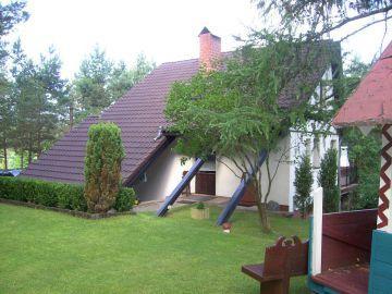 Nasz komfortowy dom znajduje się na przestronnej, ogrodzonej działce o powierzchni około 2000 m², zaledwie 50 metrów od brzegu jeziora Mala Boruja. Dom został zaprojektowany z myślą o wygodzie dla 6-8 osób, oferując: