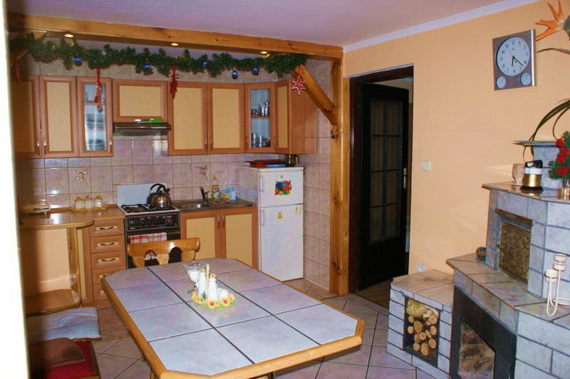 Domek posiada centralne ogrzewanie, które działa niezależnie od kominków, co gwarantuje ciepło przez cały rok.